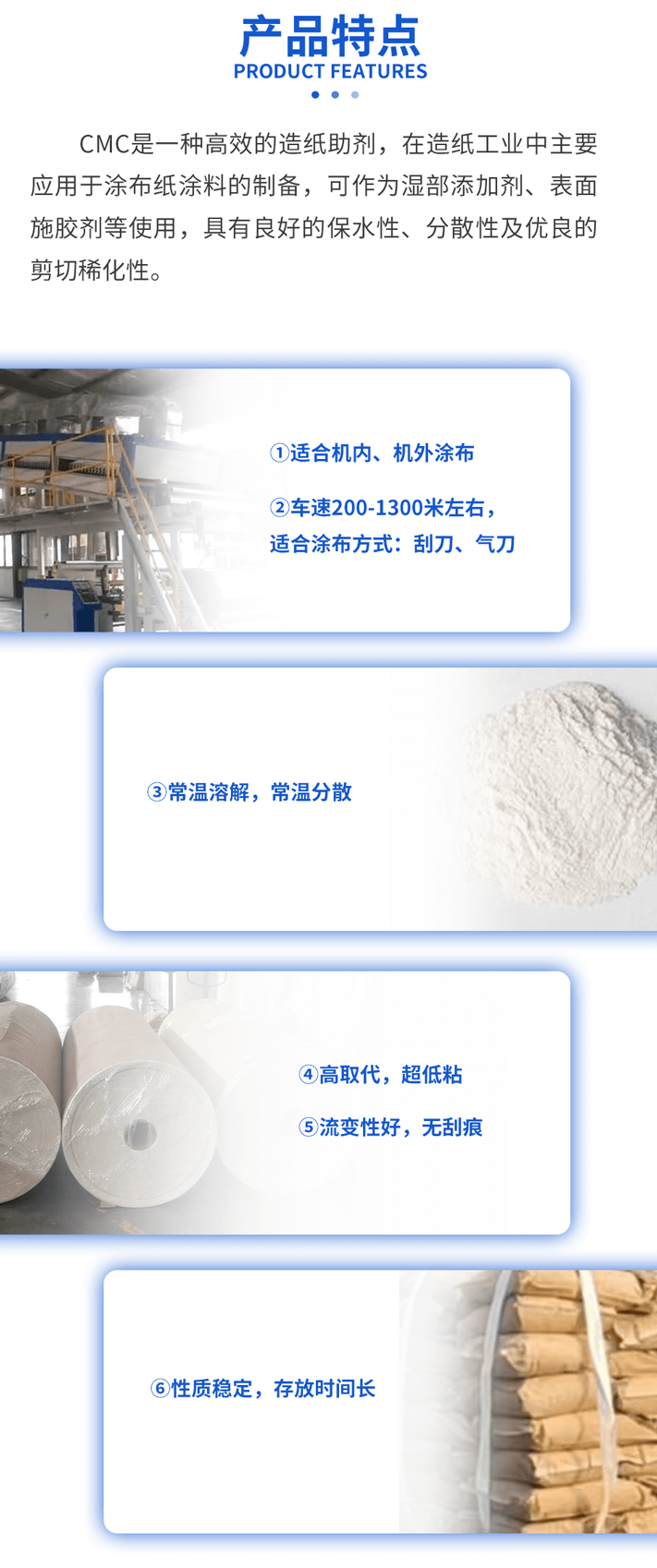 CMC羧甲基纤维素钠 造纸用增稠剂 造纸粘合剂 水处理用稳定剂 详细介绍 :